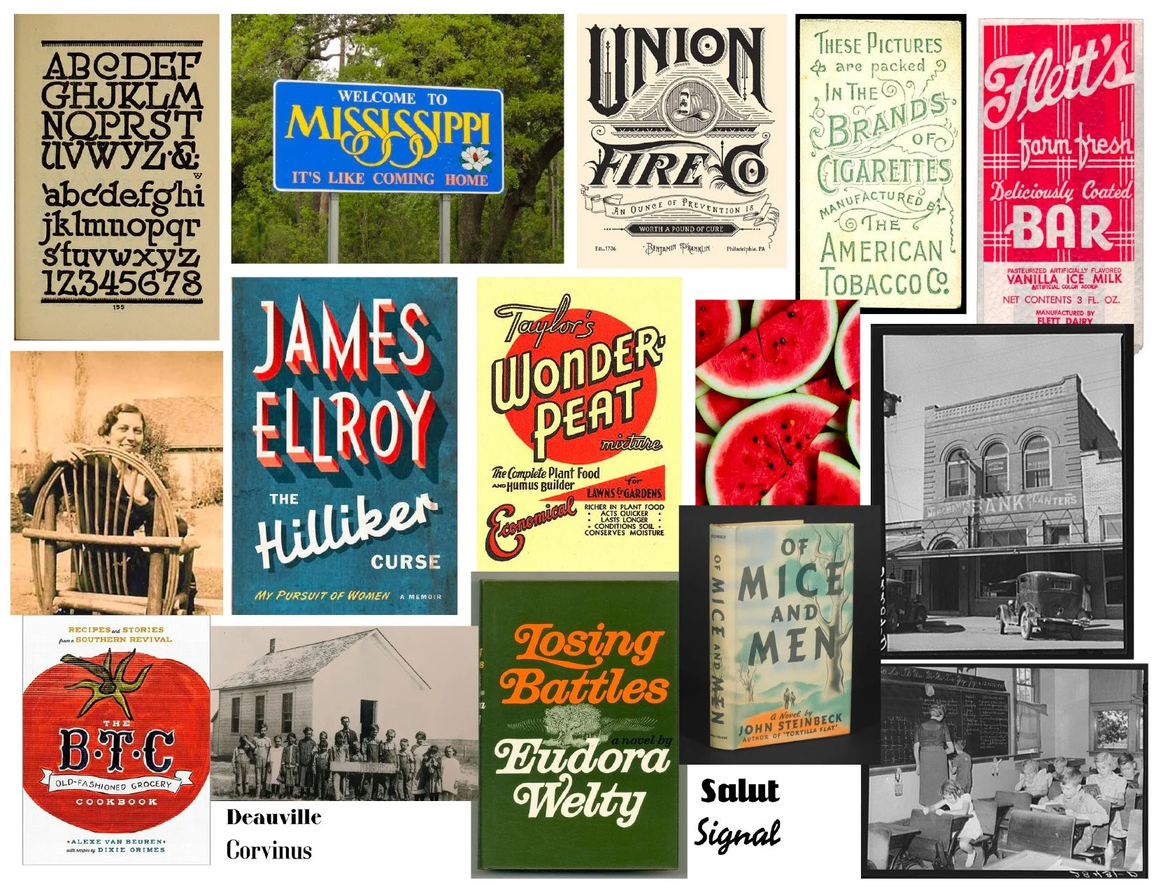 I looked up photos of Mississippi in the 30s to give me some context for the setting. Some art deco styles were still popular then, however the depression had to be factored in too which brought to mind distressed, darker colors. Welty was a photographer herself, so I was able to use the author’s own images as reference material.
